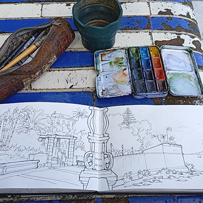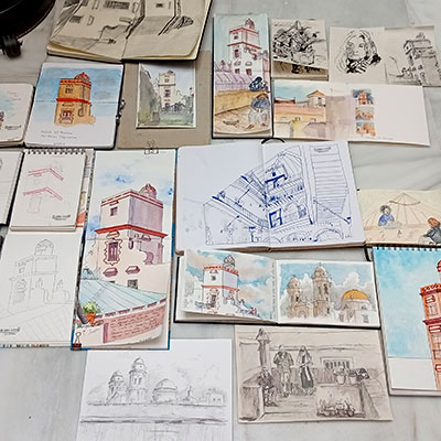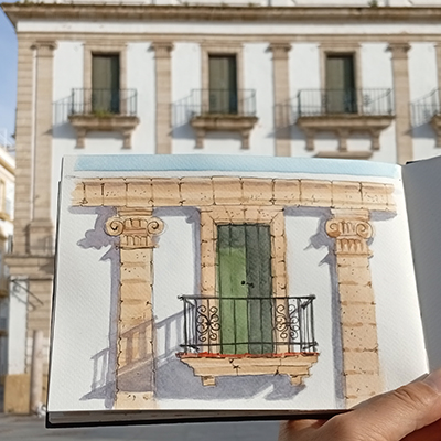 El objetivo del taller de dibujo en Cádiz será tener un cuaderno de viaje de la semana. No necesita ser muy detallado o terminado. Pero irás añadiendo tus bocetos, textos y detalles todos los días del tour, para tener un recuerdo personalizado y único de él cuando finalice.